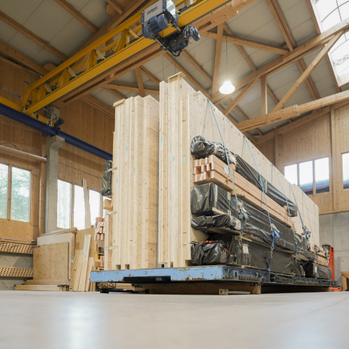 Beim verwendeten Beton versuchen wir, den Recyclinganteil immer weiter zu erhöhen. Bei unserem Holz nutzen wir jedes Stück möglichst effizient, eventuelle Reste werden für unseren eigenen geschlossenen Energiekreislauf verwendet.